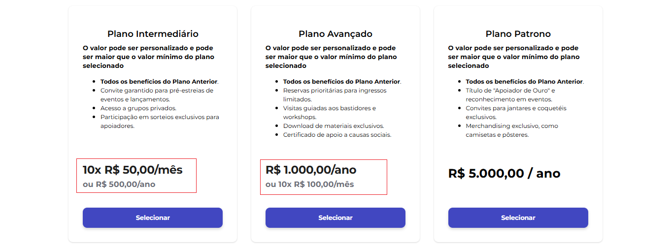 🔗 Importante: O link direto leva o apoiador para a página do plano. Depois de preencher os dados, ele será direcionado para a página de pagamento.