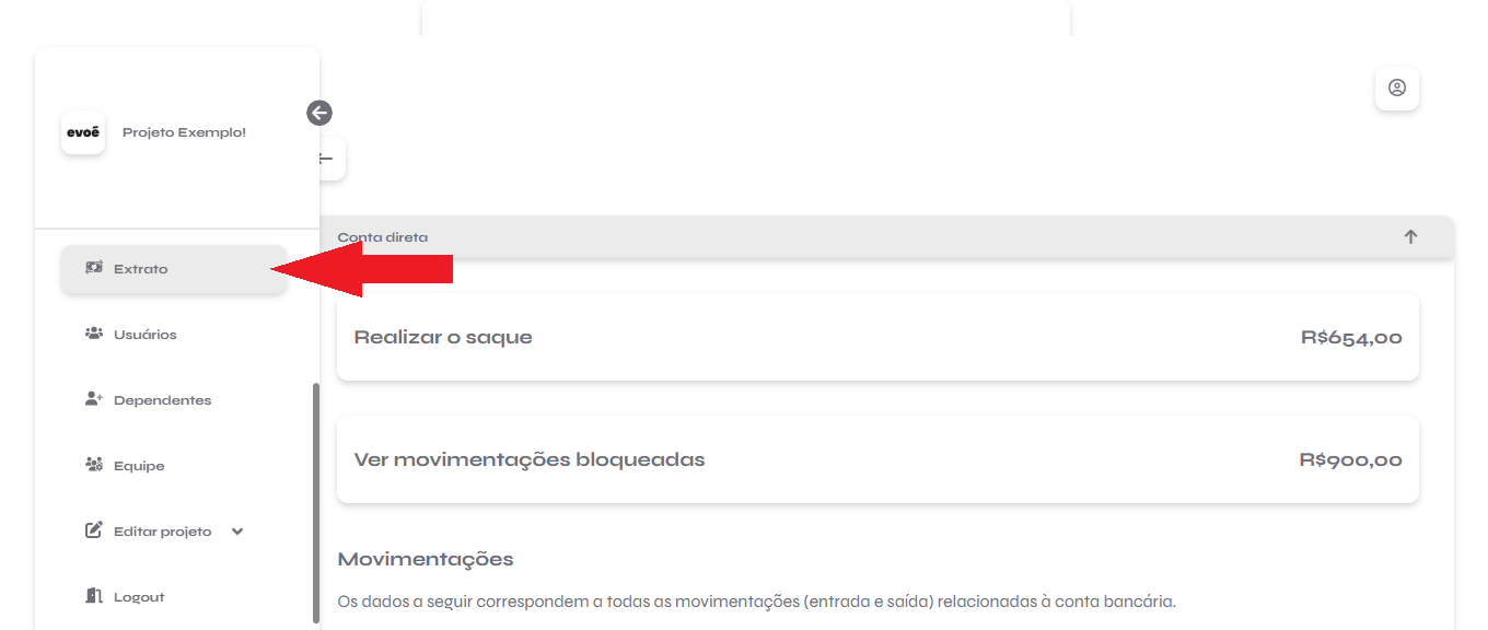 - No menu lateral direito, selecione a aba “Extrato”.