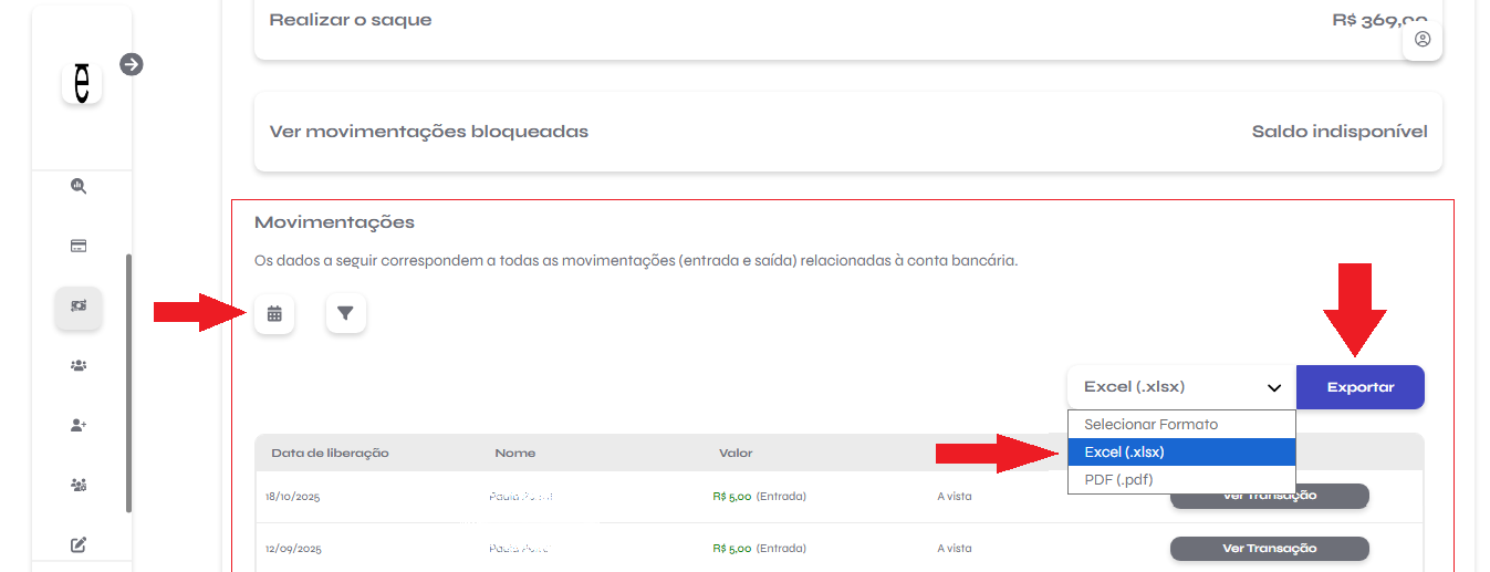 Para exportar os dados de extrato, siga o passo a passo abaixo: